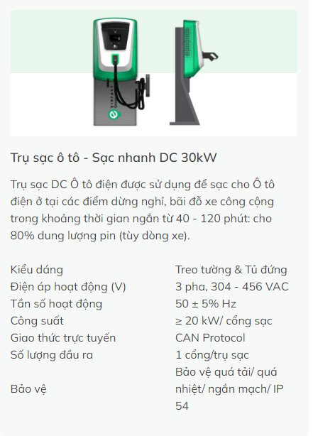 - Đơn giá sạc quá giờ: 1.000 VNĐ/ phút kể từ phút thứ 31 sau khi pin đầy (chỉ áp dụng với ô tô).